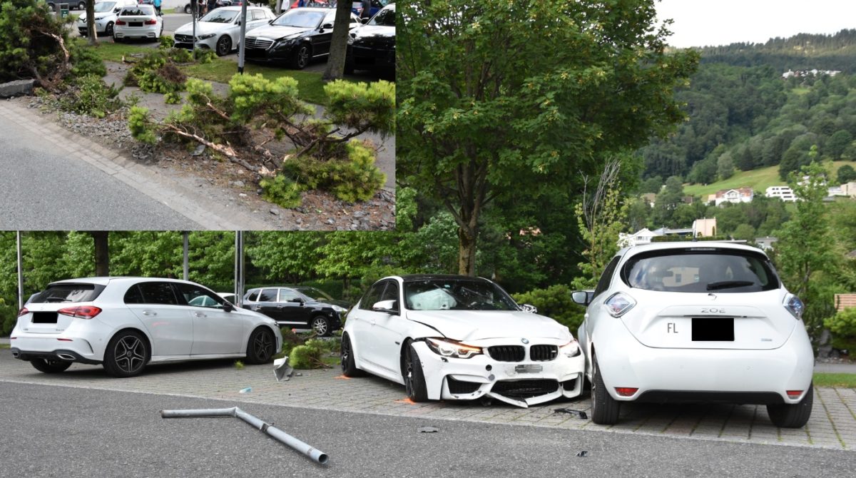 Der Lenker fuhr mit seinem Personenwagen am Donnerstag, 11.07.2019, gegen 19:45 Uhr, auf der Landstrasse in Triesen in südliche Richtung. Nach dem Verlassen des Kreisels bei McDonalds beschleunigte dieser sein Fahrzeug, so dass dieses ins Schleudern kam und der Lenker in der Folge die Kontrolle über das Fahrzeug verlor. Ausser Kontrolle überfuhr der Personenwagen das Trottoir und geriet auf die Parkplätze bei McDonalds. Dort kollidierte das Fahrzeug mit einem geparkten Personenwagen. Verletzt wurde niemand. An drei Personenwagen entstand erheblicher Sachschaden. Weiter wurden ein Baum und eine Werbetafel in Mitleidenschaft gezogen.