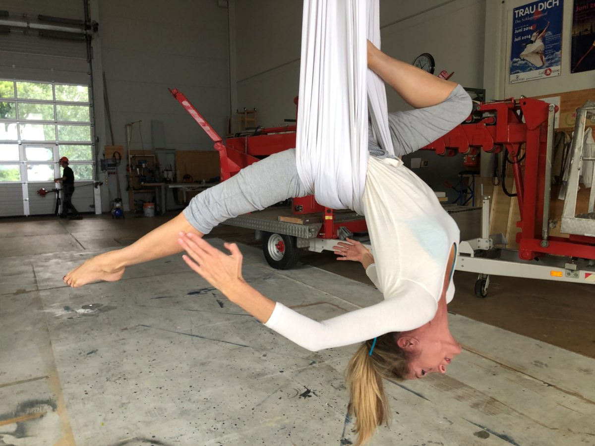 Alle Tänzerinnen und Tänzer proben auf Hochtouren und freuen sich, schon in wenigen Wochen ihre Choreographien dem Publikum zeigen zu können. Luftakrobatik „made in“ Liechtenstein zeigen Tamara Kaufmann und Marion Büchel, wie ein Schnappschuss von den Proben zeigt.