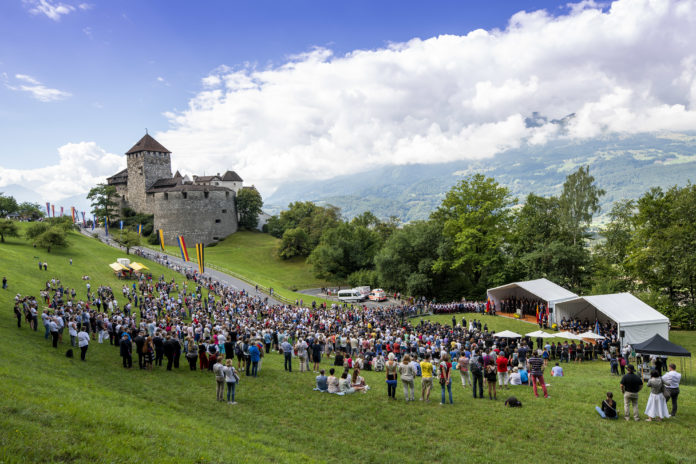 Der liechtensteinische Staatsfeiertag beginnt im feierlichen Rahmen mit dem offiziellen Staatsakt, welcher mit einem Aperitif beim Schloss Vaduz abgeschlossen wird.