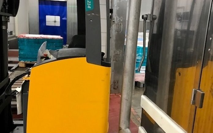 Der Mitarbeiter war gegen 14:45 Uhr damit beschäftigt, mit einem Seitenstapler Waren zu manövrieren. Als der Seitenstapler ins Rutschen geriet, versuchte der Mann eine Kollision zu verhindern, wobei er sich den Fuss zwischen einem Schutzpoller und dem Seitenstapler einklemmte. Er erlitt am linken Fuss eine Verletzung unbestimmten Grades und wurde mit dem Rettungsdienst ins Spital gebracht.