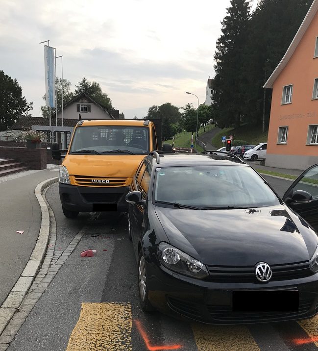 Gegen 07:30 Uhr fuhr ein Mann mit seinem Lieferwagen auf der Vorarlberger-Strasse in Richtung Nendeln. Als er das verkehrsbedingte Anhalten des Autos vor ihm zu spät bemerkte, kollidierte er mit diesem. An beiden Fahrzeugen entstand Sachschaden.