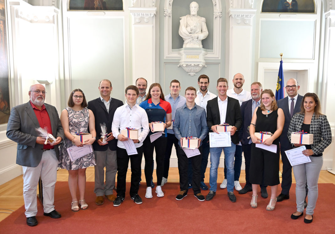 Regierungschef-Stellvertreter und Sportminister Daniel Risch empfing am Dienstag, 20. August 2019, die Medaillengewinner der Kleinstaatenspiele 2019 im Fürst-Johannes-Saal in Vaduz.