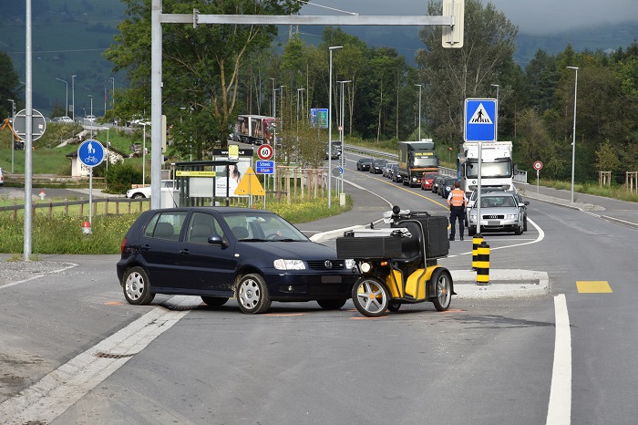 Gegen 07:30 Uhr kam es in Bendern beim Kreisverkehrsplatz „Postplatz“ zu einer Kollision zwischen einem Sattelmotorfahrzeug und einem Personenwagen. Beide Fahrzeuge wurden beschädigt.
