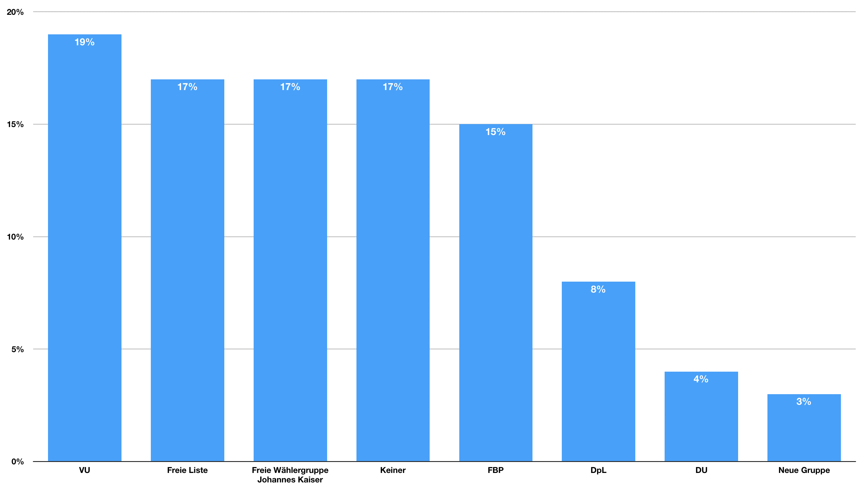 - Freie Wählergruppe Johannes Kaiser (17%, 76 Votes)