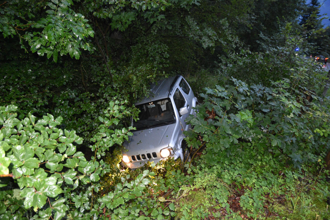 Gegen 05:45 Uhr fuhr eine Autolenkerin auf der Bergstrasse bergwärts, als sie aufgrund mangelnder Aufmerksamkeit auf die Gegenfahrbahn geriet. Dabei kollidierte sie mit einem entgegenkommenden Personenwagen. Durch die Wucht des Zusammenstosses wurde ihr Auto nach rechts über den Strassenrand in den angrenzenden Wald abgewiesen, wo es zum Stillstand kam.