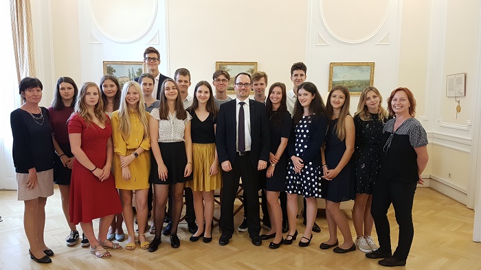 EWR-Finanzierungsmechanismus (EEA Grants) mitfinanziert werden. Grundlage für diese Projektzusammenarbeit im Bildungsbereich sind die deutsche Sprache und die über 700 Jahre lange gemeinsame Geschichte Liechtensteins und der Tschechischen Republik. Die Schülerinnen und Schüler werden noch bis zum 6. Oktober das Vermächtnis der liechtensteinischen Geschichte in Wien und Südmähren erkunden und unter anderem das Stadtpalais Liechtenstein in Wien und die als UNESCO-Weltkulturerbe geschützte Gartenanlage von Feldsberg und Eisgrub mit den beiden Liechtenstein-Schlössern besichtigen. Den traditionellen Beginn der Reise bildete erneut der Empfang an der Liechtensteinischen Botschaft in Wien. Dort informierte sich die Gruppe über die engen nachbarschaftlichen Beziehungen Liechtensteins zu Österreich und die Beziehungen zur Tschechischen Republik sowie die Mitarbeit Liechtensteins in der Organisation für Sicherheit und Zusammenarbeit in Europa (OSZE) und der UNO in Wien.
