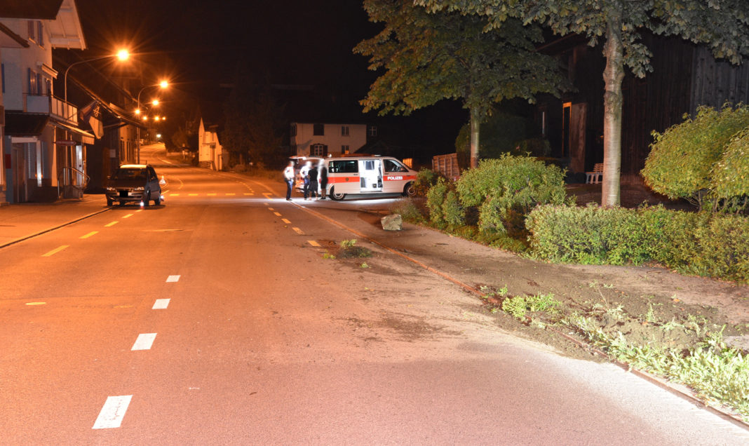 Gegen 03:00 Uhr fuhr ein Autolenker auf der Peter-Kaiser-Strasse in südliche Richtung. Aufgrund der überhöhten Geschwindigkeit und seiner Alkoholisierung fuhr er in den am rechten Strassenrand befindlichen Grünstreifen. Dort kollidierte er mit einem Stein und kam dann nach 45 Metern sowie einer 180 Grad Drehung auf der gegenüberliegenden Fahrspur zum Stillstand. Beim Autolenker wurde eine Blutentnahme angeordnet und dessen Führerausweis eingezogen.