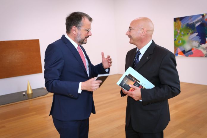 Druckfrisch hat der Vorsitzende der Wetzlarer Kulturgemeinschaft, Boris Rupp, das Programmheft der kommenden Spielzeit Regierungsrat Mauro Pedrazzini, Kulturminister ad interim, am Donnerstagabend, 19. September, im Kunstmuseum in Vaduz überreicht.