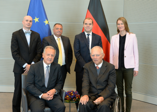 Am Donnerstag fanden zahlreiche Gesprächstermine im Deutschen Bundestag statt. Den Auftakt im Reichstagsgebäude bildete der Besuch der laufenden Plenarsitzung. Anschliessend traf sich die liechtensteinische Delegation zu einem Höflichkeitsbesuch beim Präsidenten des Deutschen Bundestages, Wolfgang Schäuble, der Liechtensteins Stellung in Europa würdigte und zum 300-jährigen Jubiläum des Landes gratulierte. Es folgten Arbeitsgespräche mit Mitgliedern des Auswärtigen Ausschusses sowie mit Mitgliedern der