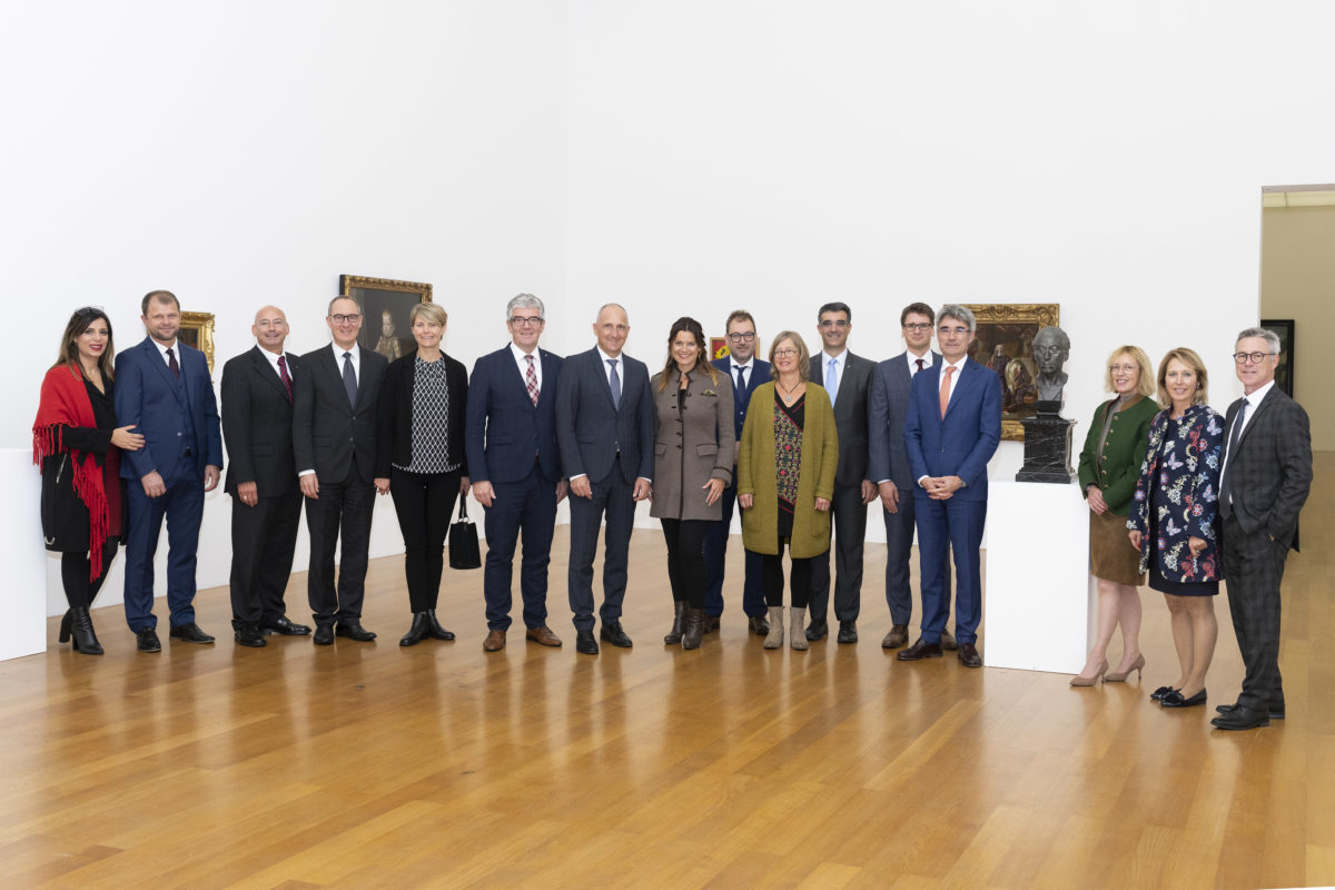 Nach der offiziellen Begrüssung wurden die Gäste anhand der Bilder im Fürst Johannes Saal in die Landesgeschichte eingeführt. Anschliessend erfolgte ein Besuch der Ausstellung „Liechtenstein. Von der Zukunft der Vergangenheit“ im Kunstmuseum Liechtenstein. Museumsdirektor Friedemann Malsch stellte der Delegation den Gedanken hinter der Ausstellung vor. Ganz im Sinne des 300-Jahr-Jubiläums symbolisiert sie mit Kunstwerken aus vier Sammlungen und sechs Jahrhunderten den fruchtbaren Austausch zwischen Vergangenheit und Gegenwart.