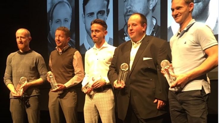 Die Geehrten am LFV-Award 2019 in Schaan: Von links Martin Büchel, Patrick Winkler, Denis Salanovic, Christoph Arpagaus und Martin Rechsteiner.