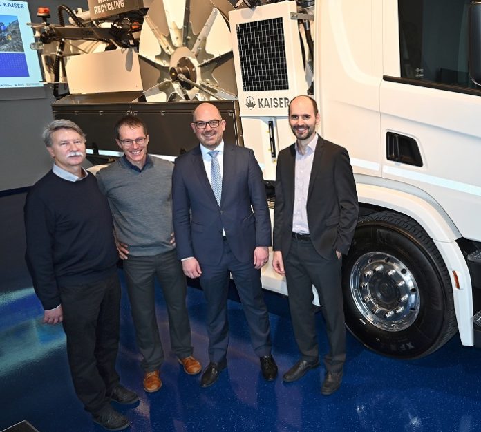 CEO und Verwaltungsratspräsident Markus Kaiser sowie die Geschäftsleitungsmitglieder Erich Rüegg (Leiter Produktion) und Daniel Laubscher (Leiter Technik), stellten Daniel Risch das erfolgreiche Familienunternehmen in einem Rundgang vor, das mit seinen innovativen Produkten im Bereich der Kanalreinigungsfahrzeuge und Mobil-Schreitbagger international eine führende Marktposition einnimmt. Nach der informativen Führung durch die Produktionsräumlichkeiten und die Entwicklungsabteilung wurde dem Wirtschaftsminister die beeindruckende Leistungsfähigkeit des „spinnenähnlichen“Mobil-Schreitbaggers in einer Live Vorführung demonstriert. „Es ist beeindruckend zu sehen, wie vielseitig so eine grosse und schwere Maschine eingesetzt werden kann und was für eine innovative Technik dahintersteckt“, hält Daniel Risch fest.