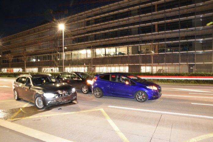 Gegen 07:00 Uhr bemerkte ein Automobilist auf der Feldkircher-Strasse das vor ihm verkehrsbedingt angehaltene Auto zu spät, fuhr auf und schob dieses gegen den davorstehenden Personenwagen.