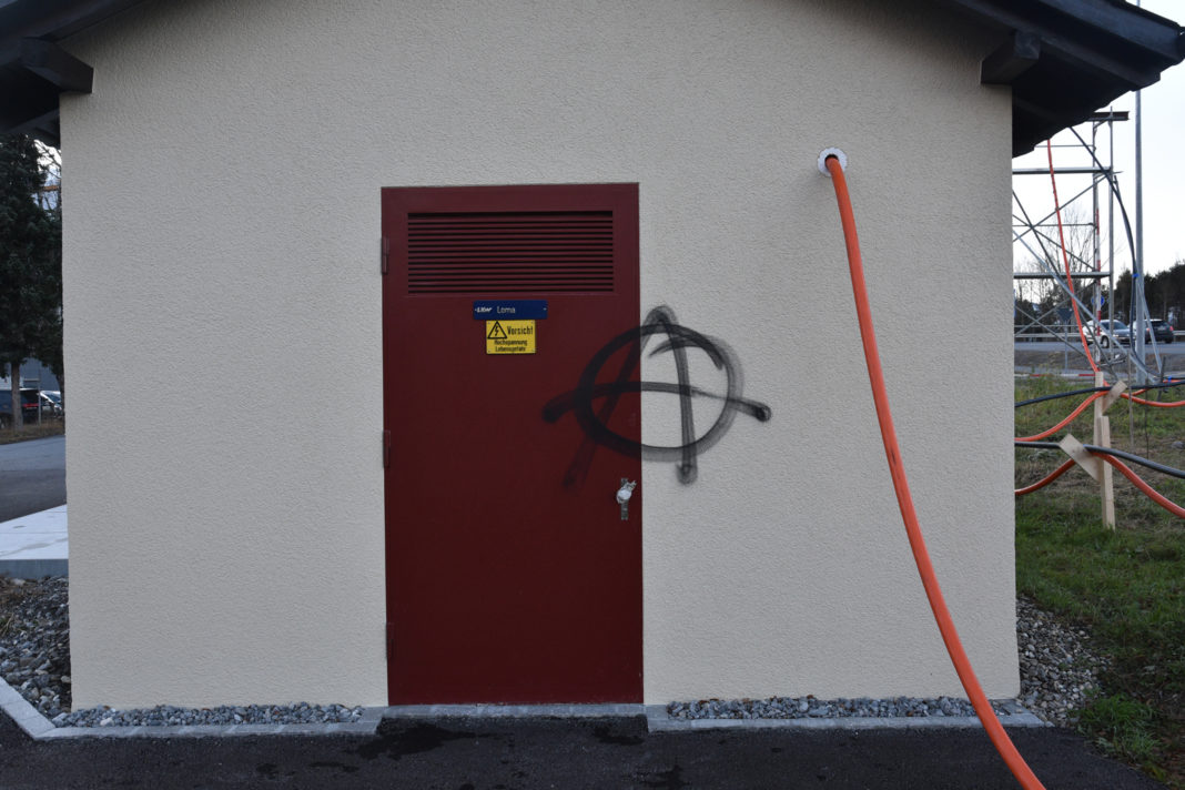 Im Zeitraum zwischen 01.12.2019 und 10.12.2019 beschädigte eine unbekannte Täterschaft eine Trafostation, indem sie eine Wand sowie die Eingangstüre mit schwarzer Sprühfarbe verunstaltete.