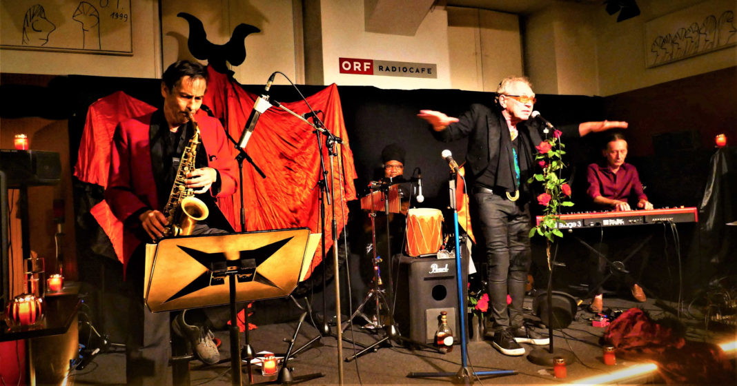Stimmgewaltig konterkariert Sänger und Schauspieler Haymon M. Buttinger zarte und raue Klänge. Gemeinsam mit dem kongenialen Lothringer Trio (Lothar Scherpe – Komposition und Keyboard, Moses Afanyi – Percussion und Helmuth Neugebauer – Saxophon, und dem eigenwilligen Gesangsduo Beans (Linus Scherpe, Sophie Rigvava) verwebt er Einflüsse aus Blues, Jazz und der Singer Songwriter Tradition und lotet mit einer gewissen Punkattidüde die Untiefen des Lebens aus. Zusammen katapultieren sie den Abend ins Unvergessliche. Tom Waits, Lou Reed und Billie Eilish lassen grüßen.