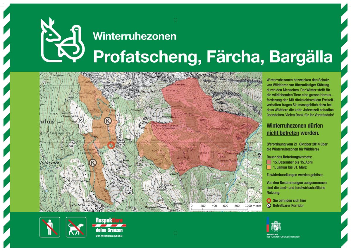 Im Winter unterscheiden sich die klimatischen Gegebenheiten im Talraum wesentlich von denen im Gebirge. Deshalb werden in Liechtenstein zwei unterschiedliche Zeitspannen für Betretungsverbote unterschieden. Für alle Gebiete „Hinter dem Kulm“ dauert das Betretungsverbot für die ausgeschiedenen Ruhezonen vom 15. Dezember bis zum 15. April. Auf der Rheintalseite sind die Freizeitnutzer hingegen nur vom 1. Januar bis zum 31. März angehalten die Winterruhezonen zu umgehen. Bei Verstössen gegen die Winterruhezonenverordnung können empfindliche Bussen verhängt werden.