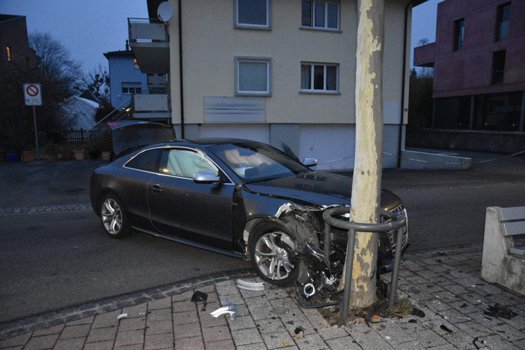 Ein Mann fuhr gegen 17:00 Uhr mit seinem Auto auf der Nebenstrasse „Am Schrägen Weg“. Dabei lenkte ein an seinem Finger klebender Kaugummi den Fahrer so stark ab, dass er gegen einen aus Stahl gefertigten Baumschutz stiess.