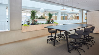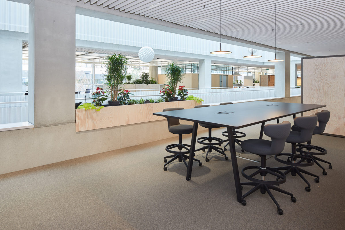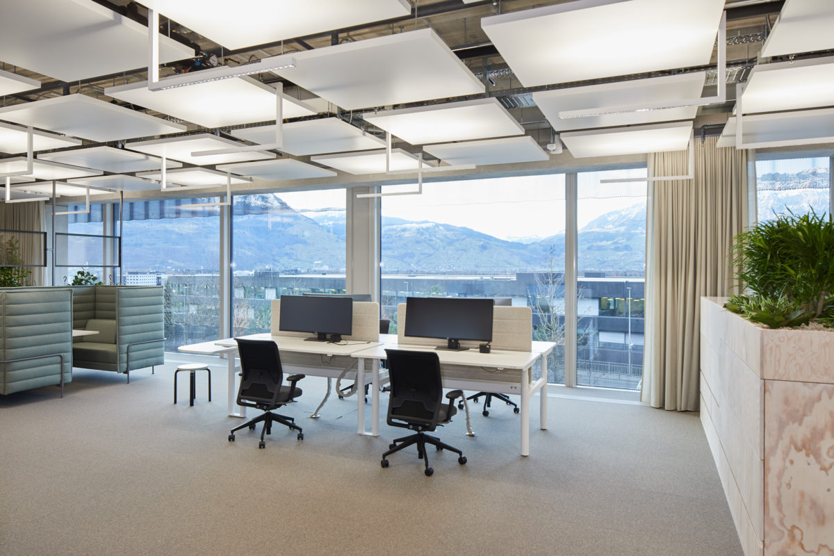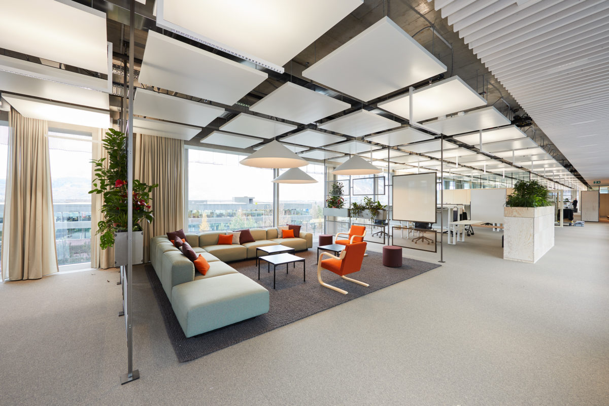 Die Gestaltung der Arbeitsumgebung im neuen Bürogebäude folgt dem Prinzip des Open Space: Freie Flächen und zurückhaltende visuelle Grenzen fördern die Kommunikation und sorgen für Transparenz und kurze Wege. Das Raumkonzept bietet den Mitarbeitenden eine Balance zwischen Orten der Begegnung und Zusammenarbeit sowie Rückzugsmöglichkeiten für fokussiertes Arbeiten. Nach dem «Flex Desk»-Prinzip können sie ihren Platz flexibel anhand der wechselnden Anforderungen und Bedürfnisse auswählen. Dies ermöglicht agile Arbeitsmethoden und ein hohes Mass an Individualität. Eine zusätzliche Erholungszone wird mit dem neu gestalteten Park im Aussenbereich des Gebäudes entstehen.