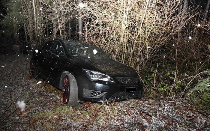Der Lenker eines Personenwagens fuhr gegen 00:20 Uhr auf der Plankner Strasse in Richtung Planken. Aufgrund der nicht angepassten Geschwindigkeit an die Strassenverhältnisse verlor der Lenker in einer scharfen Rechtskurve nach dem Forstwerkhof die Beherrschung über sein Fahrzeug. Trotz eingeleiteter Vollbremsung geriet er über den Strassenrand hinaus und beschädigte einen Randleitpfosten, bevor das Fahrzeug bei einem Erdwall zum Stillstand kam. Am Fahrzeug und am Randleitpfosten entstand ein Sachschaden in noch unbekannter Höhe; Personen wurden nicht verletzt.