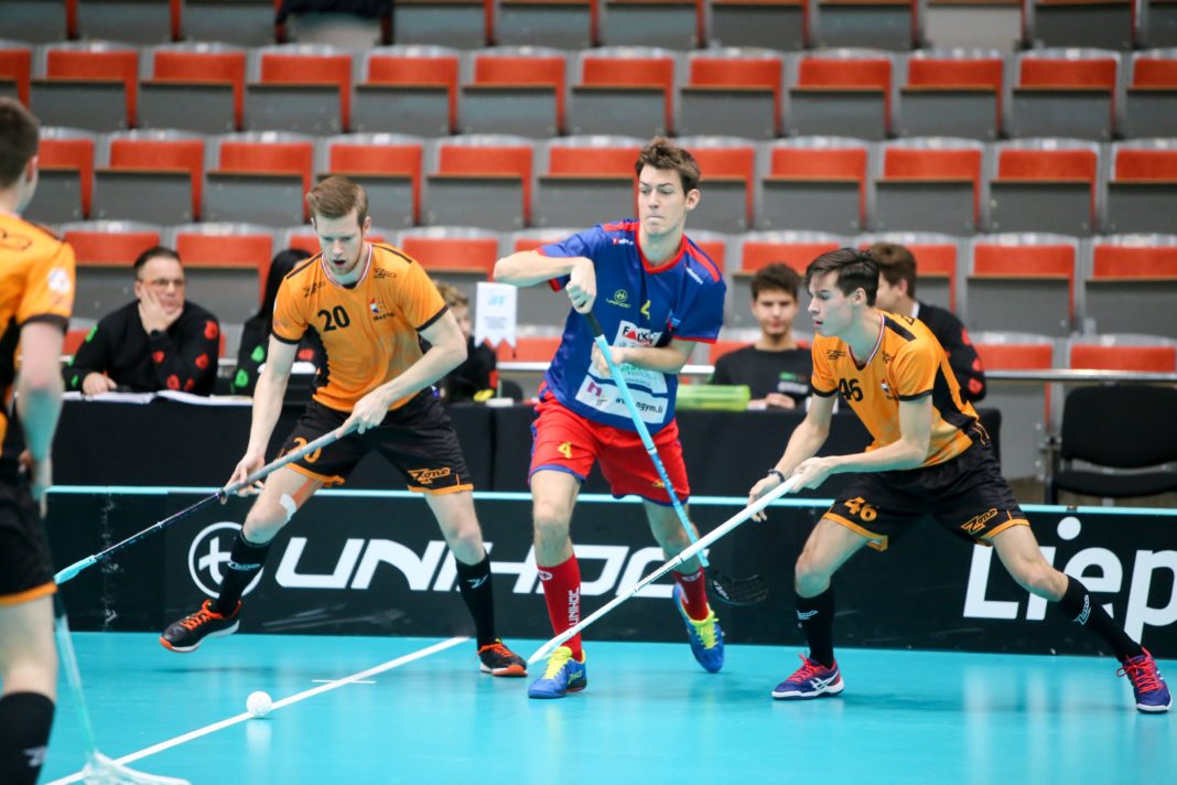 Die Umstellung vom Startspiel, wo die Liechtensteiner gegen die tschechische Weltklasse-Auswahl mehrheitlich in der Abwehr gefordert waren, zur Partie gegen die ebenfalls noch punktelose niederländische Equipe, gelang Liechtenstein nicht optimal. Die Holländer starteten besser, führten nach zehn Minuten nicht unverdient 3:0. Doch ein energischer Vorstoss von Remo Tischhauser zum 1:3 brachte Sicherheit ins Liechtensteiner Spiel. Fortan gelang es ihnen besser, das Spiel ausgeglichener zu gestalten. Belohnt wurden sie durch das 2:3 von Mario Neff, notabene dessen erstes Tor für die Nationalmannschaft.