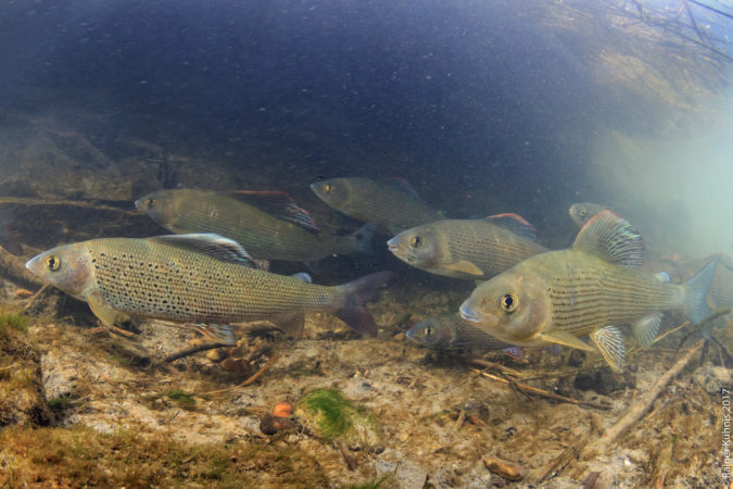 gefährdete Fischarten wie die Äsche darauf angewiesen, dass Gewässer in