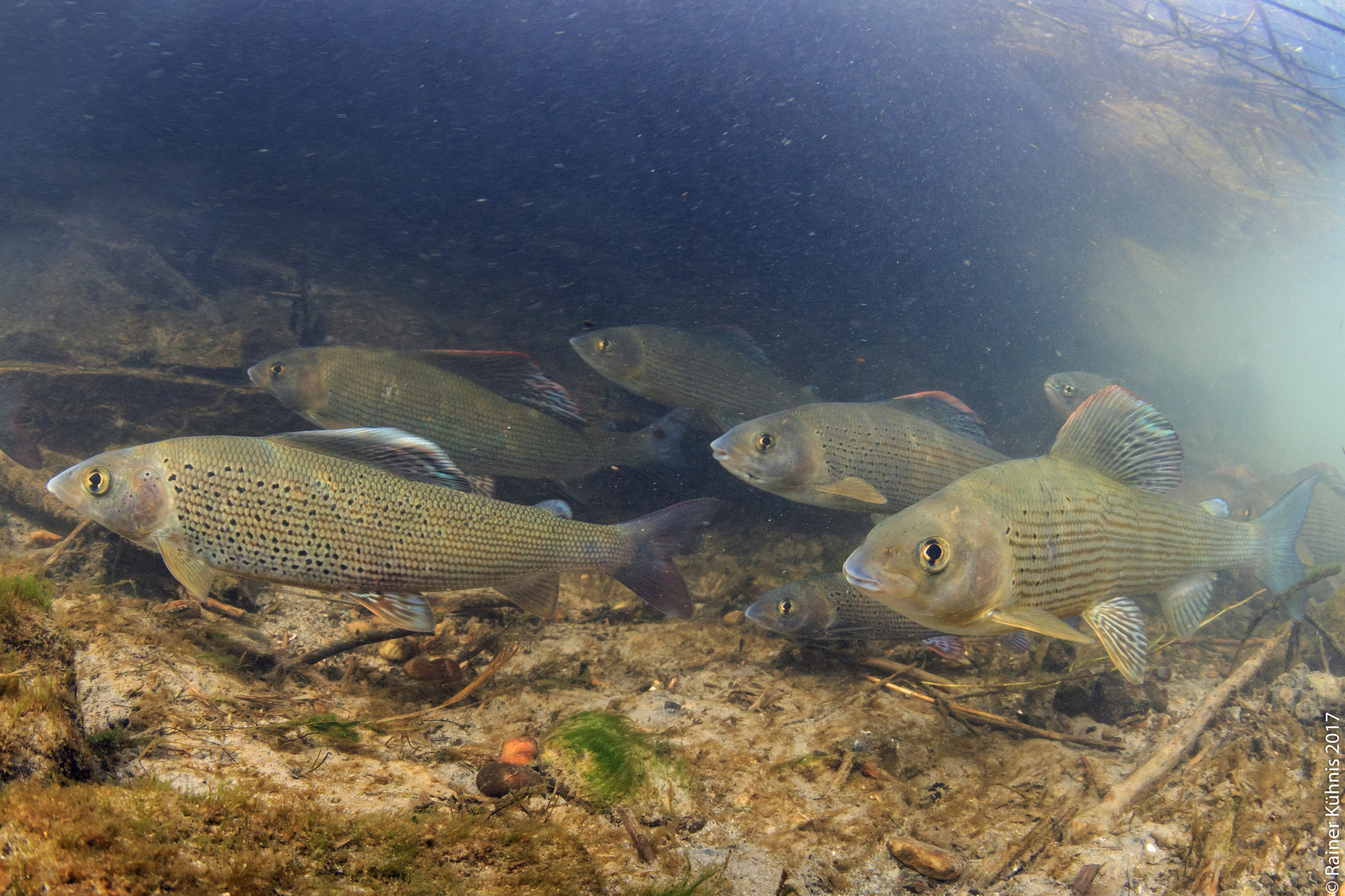 wo die Laichzeit ansteht, versammeln sich die Äschen in Schwärmen. Gerade in