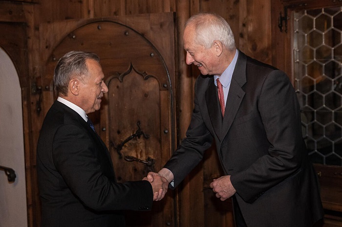 Landtagspräsident Albert Frick gratuliert S.D. Landesfürst Hans-Adam II. zum 75. Geburtstag am 14.Februar 2020. Foto: Michael Zanghellini
