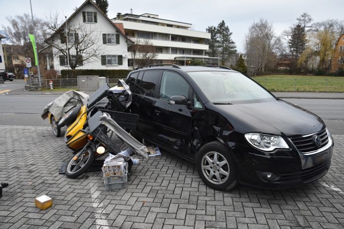 Eine Stunde später bog ein Fahrzeuglenker auf der Zollstrasse nach links auf einen Parkplatz ein, nachdem ihm eine entgegenkommende Fahrzeuglenkerin den Vortritt gewährte. Dabei kam es zu einer Kollision mit dem Postdreirad, welches auf dem Parallel zur Zollstrasse verlaufenden Fuss- und Radweg fuhr. Die Lenkerin des Dreirades verletzte sich dabei und musste sich in ärztliche Behandlung begeben.