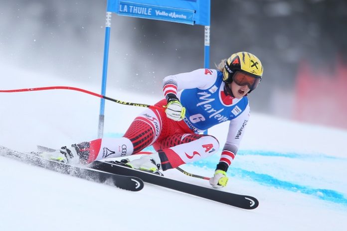 Die Vorarbergerin Nina Ortlieb gewinnt in La Thuile ihr erstes Weltcup-Rennen. Foto: GEPA Pictures, Graz.
