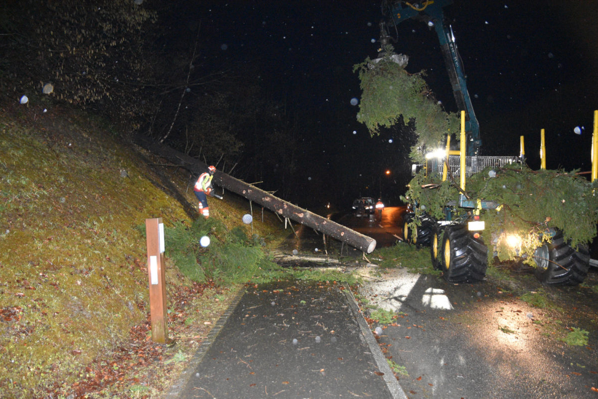 Neben umgestürzten Bäumen im Gebiet Gamprin/Schellenberg wurden auch Fassadenteile eines Geschäftshauses in Ruggell weggerissen und Baustellenabsperrungen fielen um. Die Nebenstrasse ‘Oberbühl’ war aufgrund der umgestürzten Bäume bis 07:30 Uhr gesperrt.