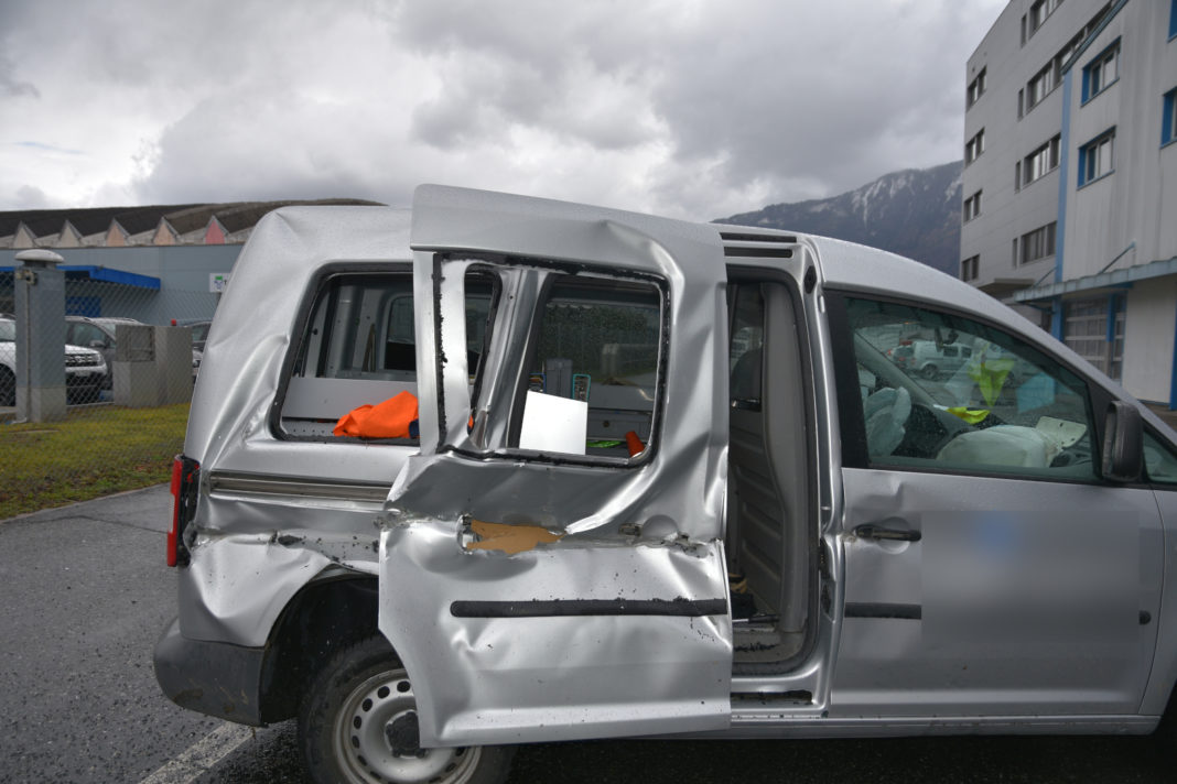 Der Fahrer des Traktors fuhr gegen 09:45 Uhr von der Nebenstrasse ‘Selemad’ kommend zum Verzweigungsbereich Selemad/Industriestrasse, um dann links in die Industriestrasse einzubiegen. Dabei übersah er einen Lieferwagen, welcher bereits auf dieser unterwegs war. Es entstand erheblicher Sachschaden.