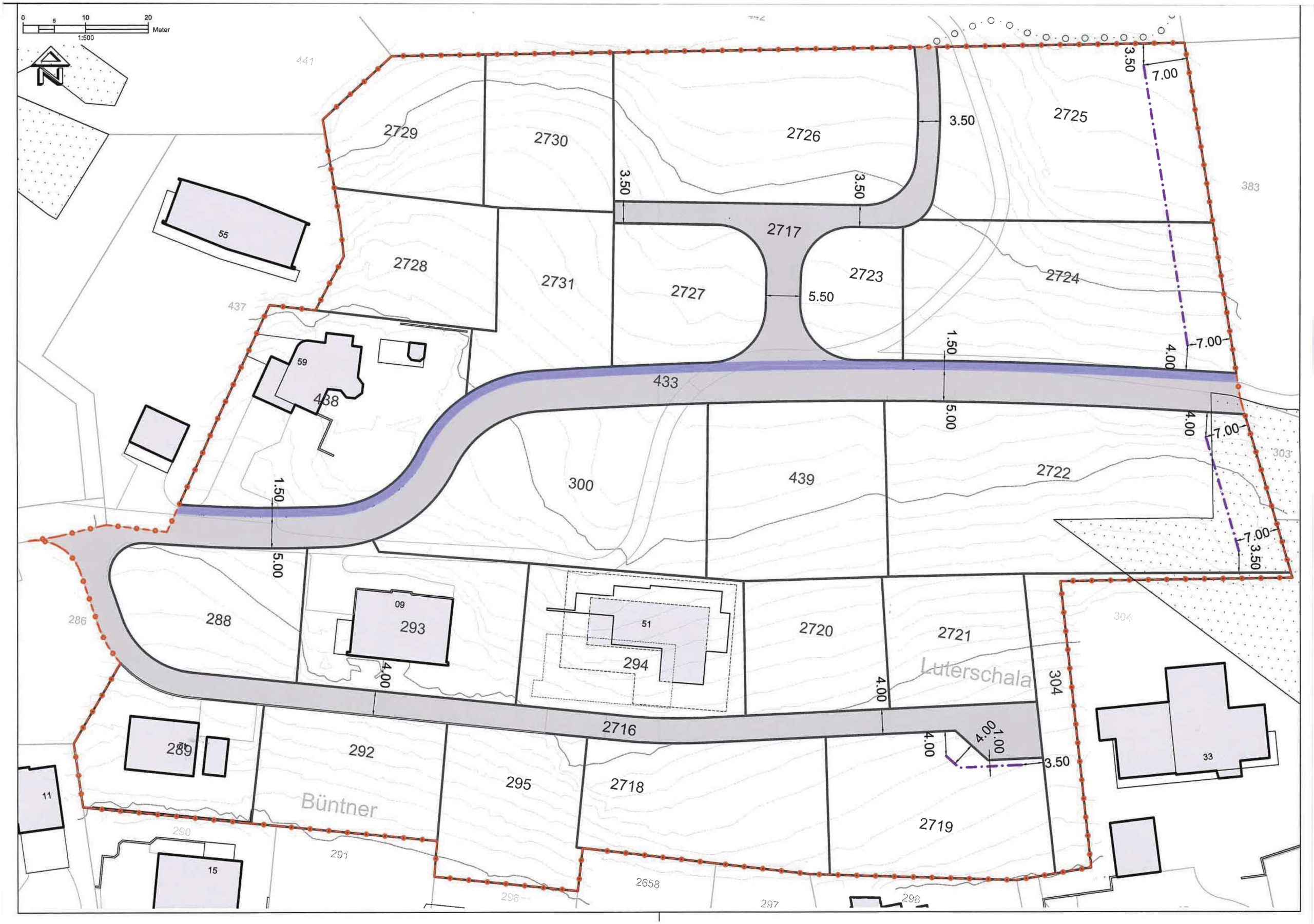 Im Zusammenhang mit der Baulandumlegung Luterschala geht es zügig voran: nach den jahrelangen und teilweise sehr schwierigen Vorbereitungsarbeiten konnte das im Gesetz über die Baulandumlegung geregelte, mehrstufige Umlegungsverfahren in den letzten Wochen und Monaten abgeschlossen werden. Sämtliche Bewilligungsverfahren sind abgeschlossen, sodass nun im nächsten Schritt mit den Bauarbeiten begonnen werden kann. An der Sitzung vom 4. März 2020 hat der Gemeinderat die Auftragsvergaben für das Strassenprojekt vorgenommen. Die Gesamtkosten belaufen sich auf rund CHF 2 Mio.