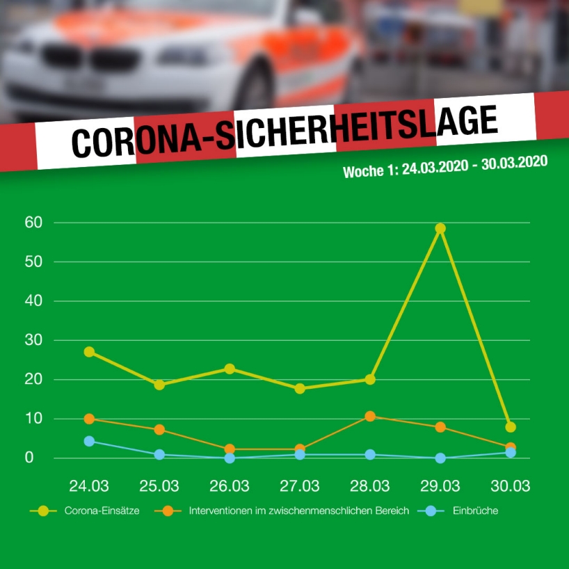 In der Zeit zwischen Sonntag- und Montagmorgen (30.03.2020) hat sich die Kantonspolizei St.Gallen mit insgesamt acht Fällen mit Bezug zum Coronavirus beschäftigt.