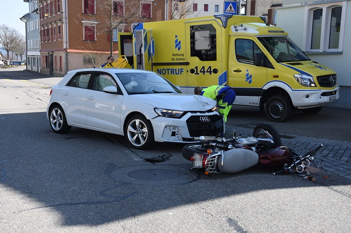 Am Mittwochmittag (18.03.2020), um 11:45 Uhr, ist es in der Husenstrasse in Kirchberg zu einer Kollision zwischen einem Auto und einem Motorrad gekommen. Der 55-jährige Motorradfahrer verletzte sich dabei.