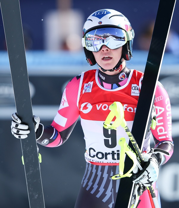 Tina Weirather beim Rennen am 18.1.2019 in Cortina d'Ampezzo, wo eigentlich das Weltcupfinale 2019/20 hätte stattfinden sollen.