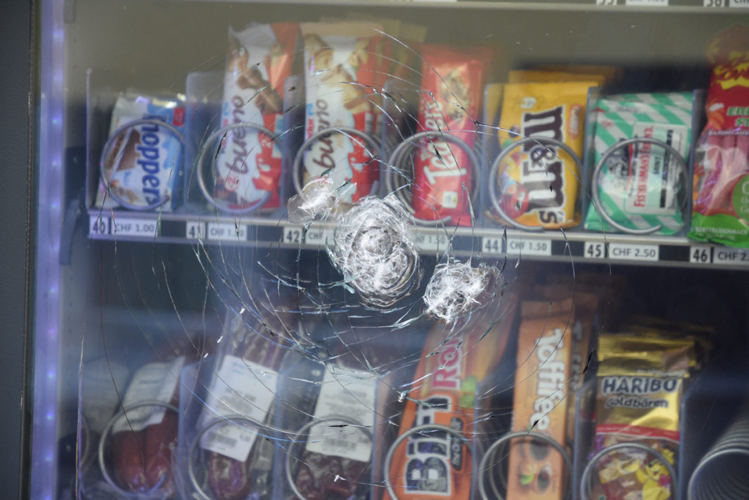Eine unbekannte Täterschaft beschädigte in der Zeit zwischen 00:20 Uhr und 05:30 Uhr die Glasscheibe eines Getränkeautomaten mit einem unbekannten Gegenstand. Es entstand ein Sachschaden von mehreren hundert Franken.