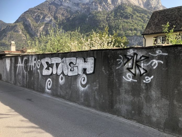 In der Zeit zwischen Freitag und Samstag (18.04.2020) hat eine unbekannte Täterschaft verschiedene Fassaden, Autos, Containers etc. verschmiert. Die Vandalen verursachten dadurch einen Sachschaden von mehreren 10’000 Franken. Die Kantonspolizei St.Gallen bittet um Hinweise.