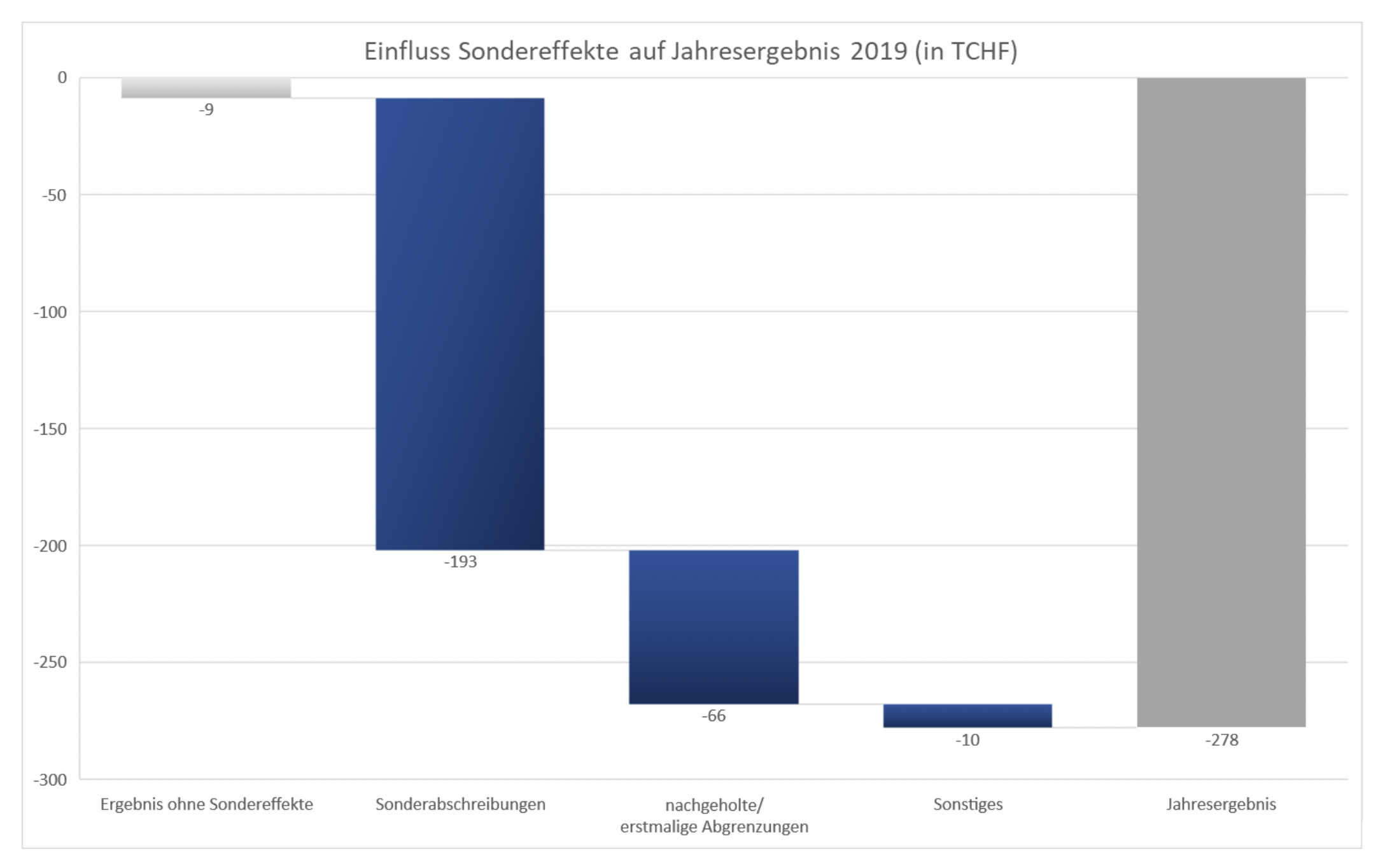Abgesehen von den Sondereffekten konnte der Aufwand im Vergleich zum Vorjahr deutlich reduziert werden. So betrug der Personalaufwand TCHF 2’192 (–TCHF 49 ggü. Vorjahr) und der Sachaufwand TCHF 1’183 (–TCHF 71 ggü. Vorjahr). Durch die nun erfolgte Korrektur des Anlagevermögens werden die künftigen Abschreibungen zudem deutlich tiefer ausfallen.
