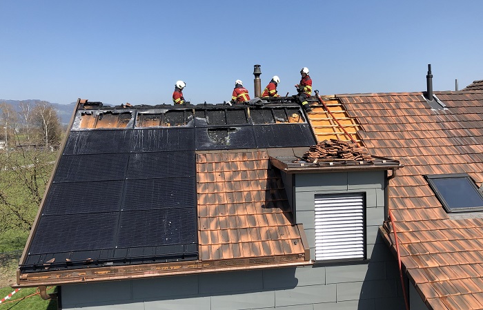 Am Donnerstag (02.04.2020), kurz nach Mittag, ist auf einem Dach eines Doppeleinfamilienhauses an der Hilpertstrasse ein Brand entdeckt worden. Die ausgerückten Feuerwehren konnten den Brand rasch löschen. Als Brandursache steht zurzeit die Photovoltaikanlage im Vordergrund. Der Sachschaden wird auf mehrere zehntausend Franken geschätzt.