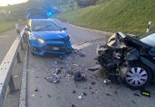 Am Dienstag (14.04.2020), kurz nach 20 Uhr, ist es auf der Flawilerstrasse zu einer Kollision zwischen zwei Autos gekommen. Ein Autofahrer verletzte sich leicht.