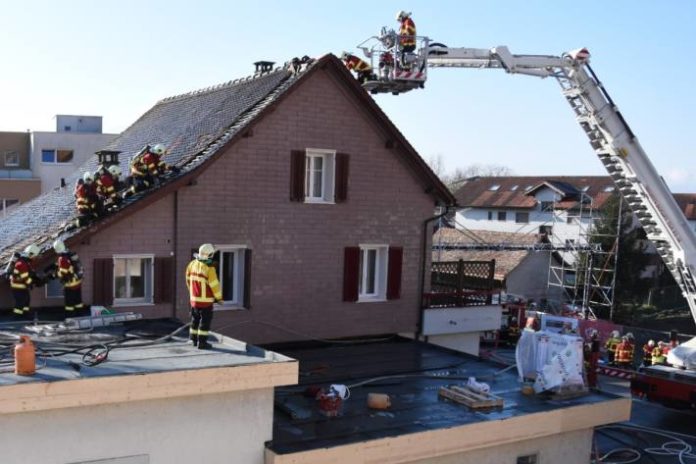 Ein 49-jähriger Dachdecker war mit Sanierungsarbeiter auf einem Flachdach, welches an ein Wohnhaus grenzt, beschäftigt. Bei Schweisserarbeiten dürfte sich durch die entstandene Hitze ein Mottbrand beim angrenzenden Wohnhaus, ausgelöst haben. Der Dachdecker und zwei weitere Bauarbeiter einer benachbarten Baustelle begannen bereits vor dem Eintreffen der Feuerwehr mit der Brandbekämpfung und die anwesende Familie des Wohnhauses konnte sich vor Eintreffen der Feuerwehr in Sicherheit bringen. Der Brand konnte von der ausgerückten Feuerwehr schnell unter Kontrolle gebracht werden, bevor er sich weiter ausbreiten konnte. Während den Löscharbeiten musste die Durchfahrt durch Rüthi gesperrt werden. Zwei Personen wurden vom Rettungsdienst und dem Notarzt vor Ort untersucht. Sie blieben unverletzt und mussten nicht ins Spital gebracht werden. Der entstandene Sachschaden beträgt mehrere zehntausend Franken.