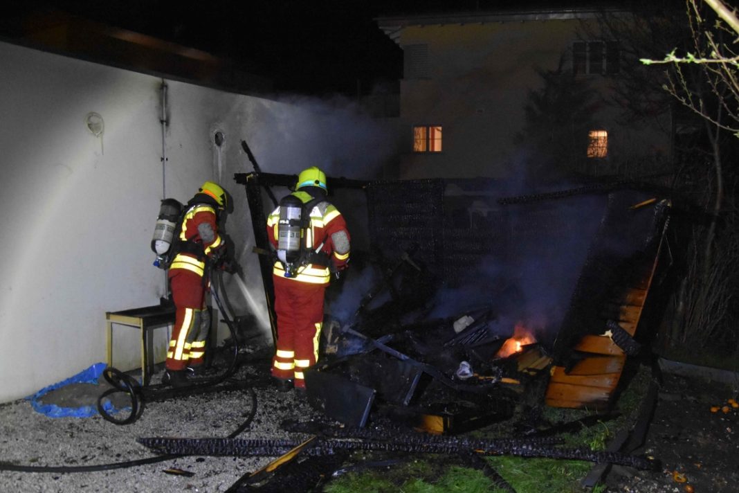Anwohner meldeten der Kantonalen Notrufzentrale, dass sie Feuer im Garten des Nachbarn wahrnehmen. Die ausgerückte Feuerwehr konnte den Brand schnell löschen. Bei der Brandursache dürfte es sich um eine technische Ursache handeln. Personen wurden keine verletzt, allerdings befanden sich im Gartenhaus 18 Wachteln, welche den Brand nicht überlebten. Der entstandene Sachschaden beträgt rund 2’000 Franken.