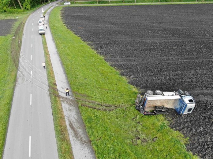 Am Freitag (01.05.2020), um 07:40 Uhr, ist auf der Rietstrasse, ein 3-Achsen-Lastwagen zur Seite gekippt. Es entstand hoher Sachschaden.