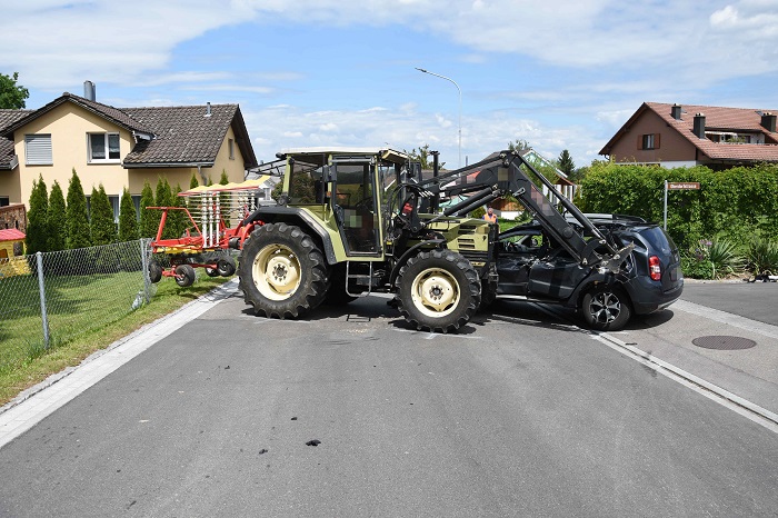 Ein 20-Jähriger war mit seinem Traktor mit Frontlader von Niederbüren Zentrum nach Gossau unterwegs. Bei der Verzweigung Oberdorfstrasse bog er links in die Oberdorfstrasse ein. Gleichzeitig kam ihm ein 36-Jähriger mit seinem Auto entgegen. In der Folge prallte der Frontlader des Traktors in die linke Seite des Autos. Bei der Kollision verletzte sich der 36-jährige Autofahrer leicht. Er konnte selbstständig einen Arzt aufsuchen.
