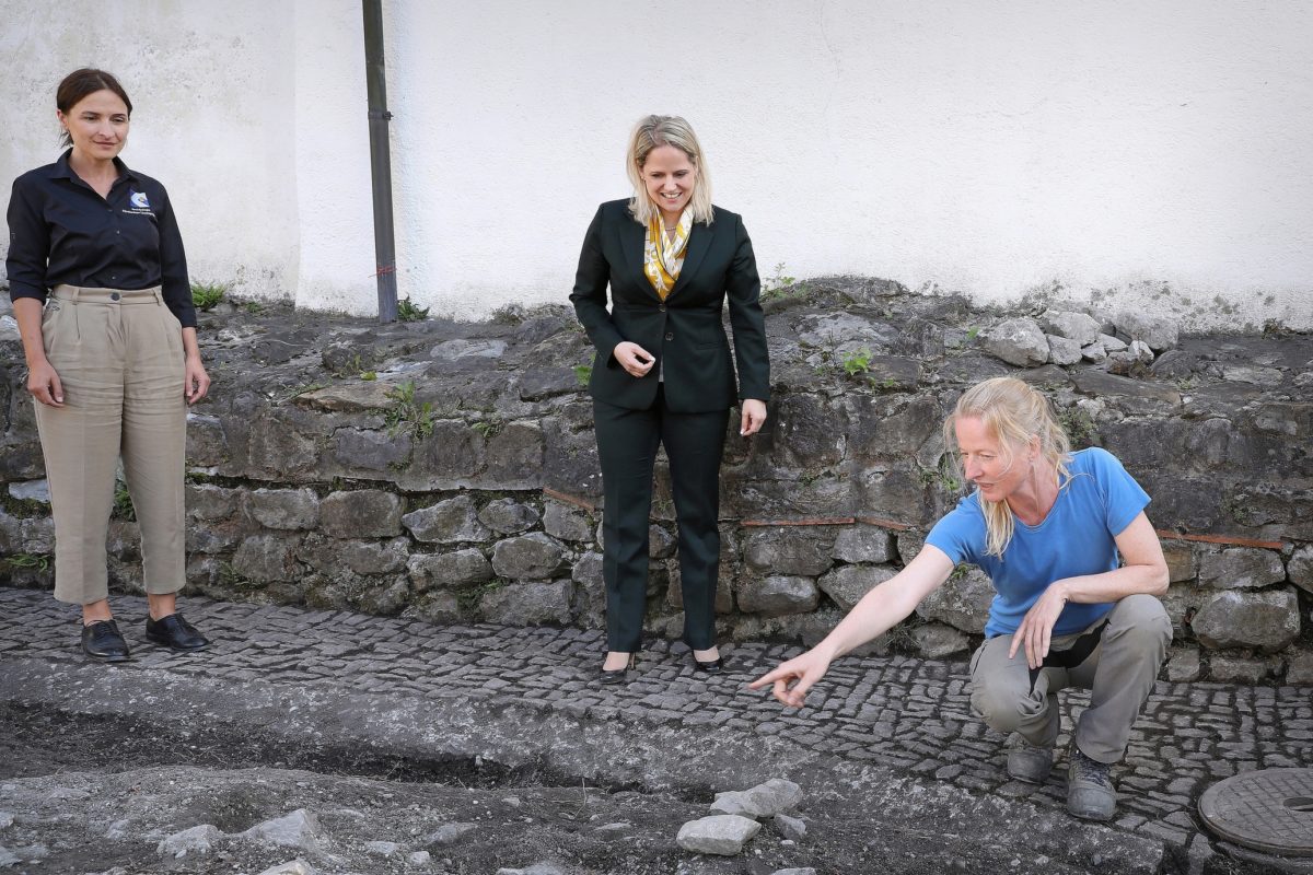 Regierungsrätin Katrin Eggenberger traf sich mit dem achtköpfigen Team der Archäologie in Triesen sowie mit dem Notgrabungsteam und diskutierte unter anderem die Herausforderungen, welche die rege Bautätigkeit in Liechtenstein mit sich bringt und betonte dabei die Bedeutung der archäologischen Tätigkeit. „Es ist wichtig, dass wir für unser kulturelles Erbe einstehen, es verstehen und auch schützen“, sagte Kulturministerin Katrin Eggenberger.