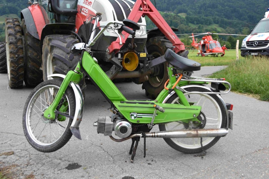 Am Dienstag (12.05.2020), kurz vor 16:30 Uhr, ist es auf der Gastermattstrasse zu einer Kollision zwischen einem Traktor und einem Mofa gekommen. Die 17-jährige Mofafahrerin wurde mit unbestimmten Verletzungen von der Rega ins Spital geflogen.