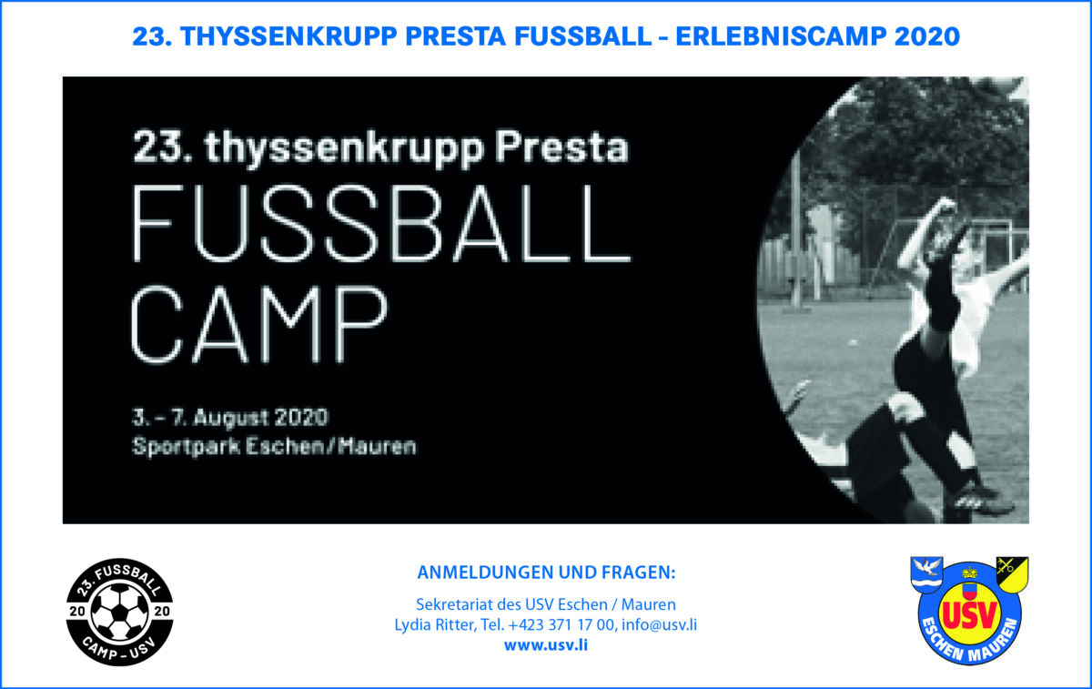 Das 23. Thyssenkrupp Presta Fussball – Erlebniscamp 2020 findet vom 03. – 07. August 2020 im Sportpark Eschen/Mauren statt.