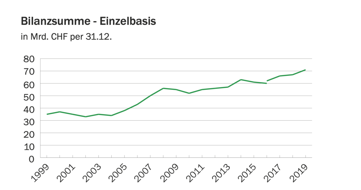 Die Bankinstitute inklusive Tochtergesellschaften (konsolidiert) verwalteten Ende 2019 CHF 349.8 Mrd. an Kundenvermögen. Es konnte ein Nettoneugeldzufluss von CHF 20.4. Mrd. ausgewiesen werden.