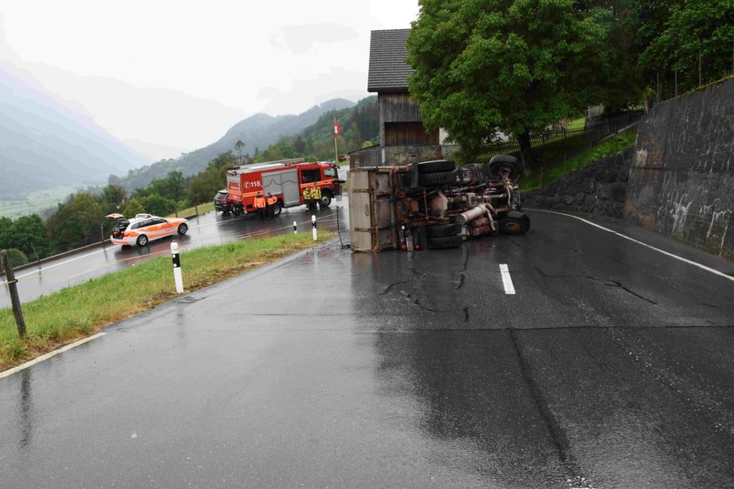 Ein 57-jähriger Mann fuhr mit seinem Lastwagen talwärts. Aus zurzeit noch unbekannten Gründen stellte sich der Lastwagen vor einer Linkskurve quer und kippte auf die linke Seite. Dadurch lief eine geringe Menge Diesel aus, welche von der örtlichen Feuerwehr gebunden werden konnte. Für die Bergung des Lastwagens musste die Strasse für rund eine Stunde gesperrt und der Verkehr umgeleitet werden. Der entstandene Sachschaden beläuft sich auf mehrere tausend Franken.