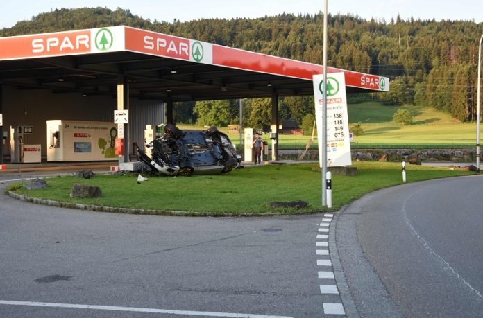 Der 30-Jährige fuhr mit seinem Auto auf der Industriestrasse Richtung St.Gallen. In der Linkskurve im Bereich der Spar-Tankstelle geriet das Auto von der Fahrbahn ab. Dort prallte es gegen einen Stein, muss abgehoben und gegen eine Werbetafel und eine Entlüftungseinrichtung der Tankstelle geprallt sein. Das Auto kam auf der rechten Seite liegend zum Stillstand. Nach dem Unfall begab sich der 30-Jährige nach Hause. Er konnte dort durch eine Patrouille der Stadtpolizei St.Gallen angetroffen und der Kantonspolizei St.Gallen übergeben werden.